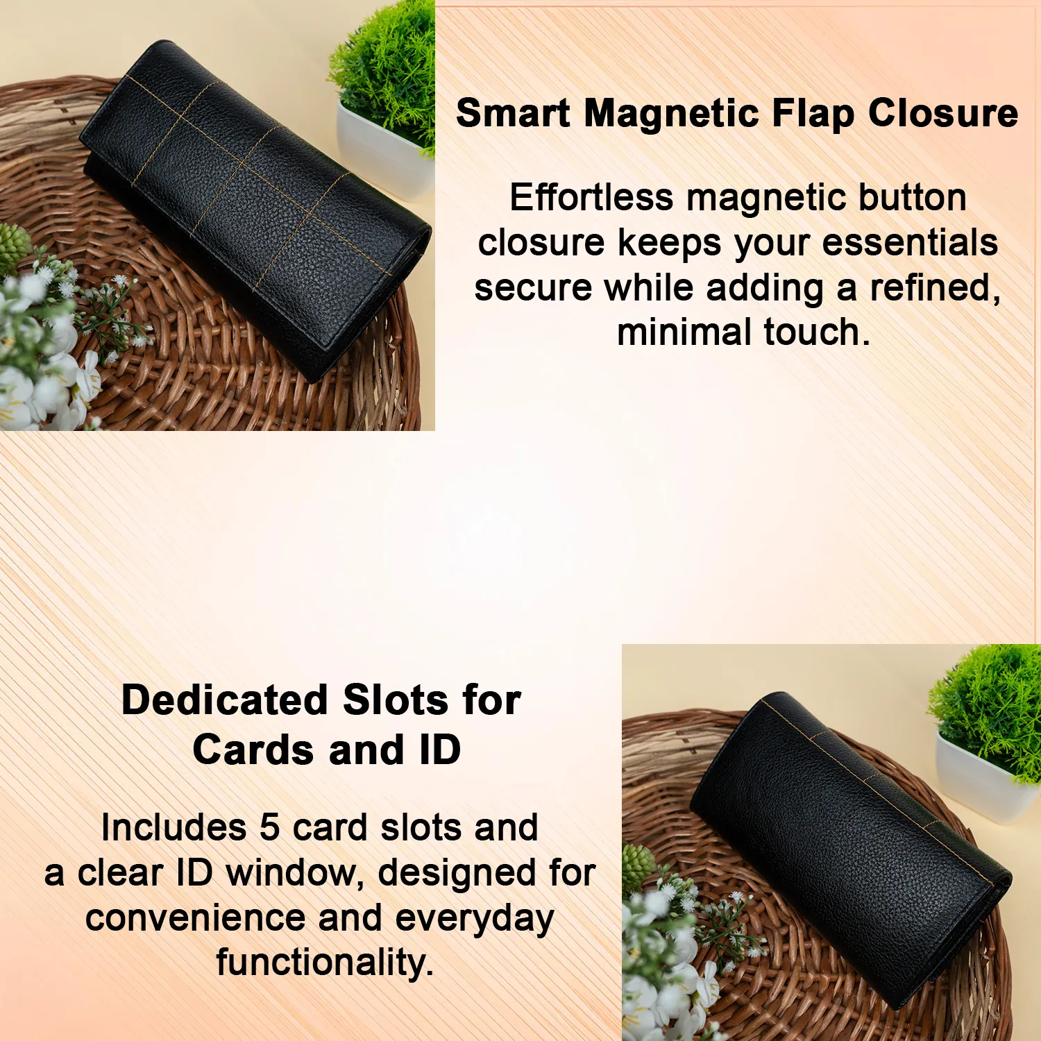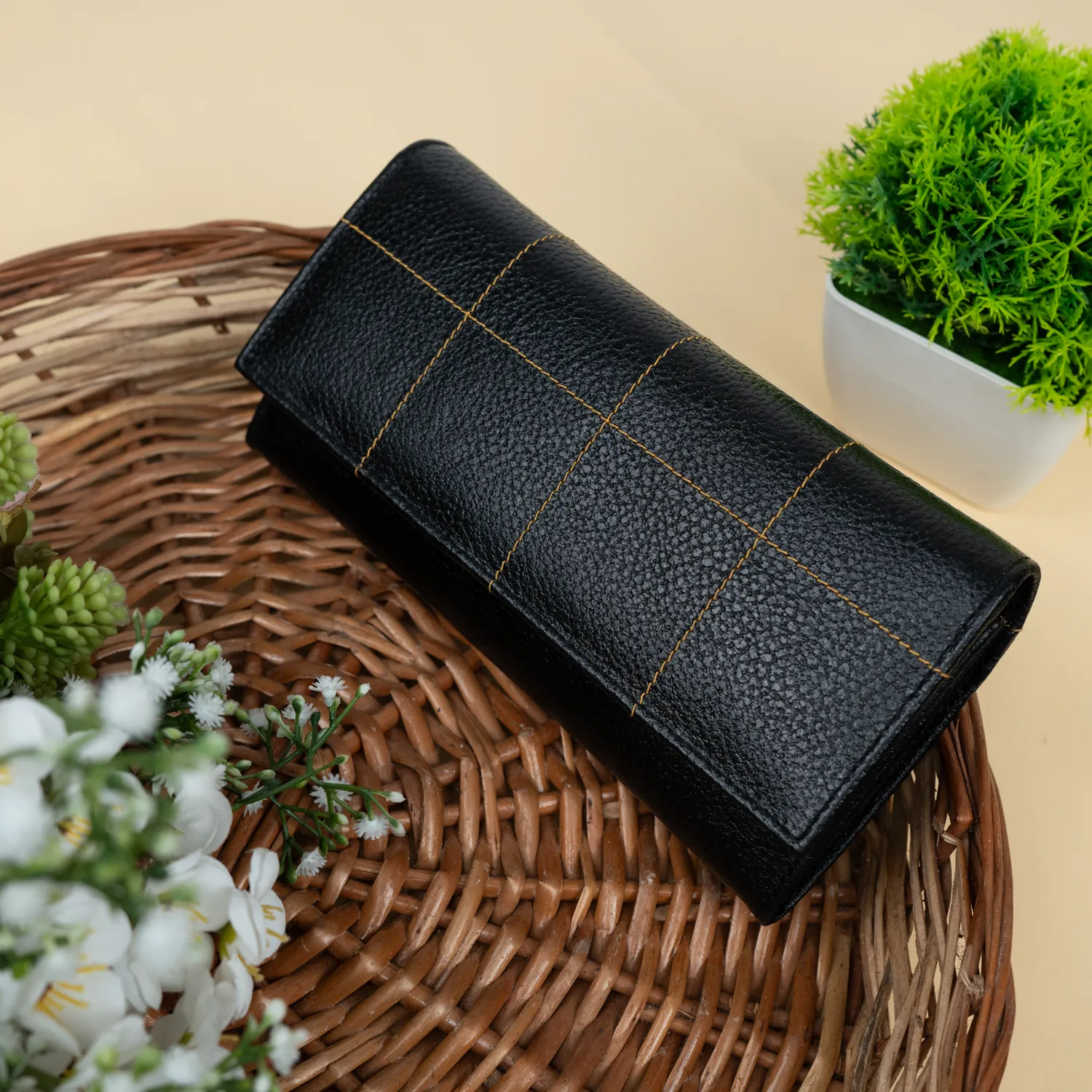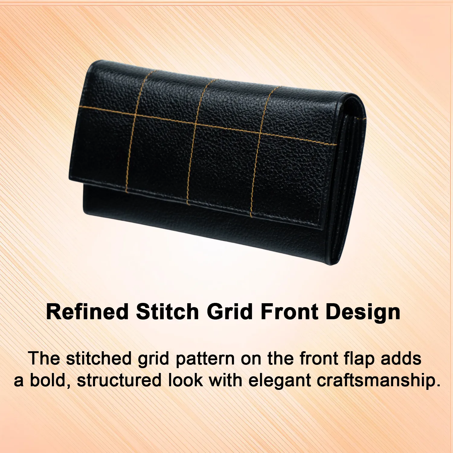 • Square Stitch Design on Flap – A unique design element that adds texture and elegance to the wallet.