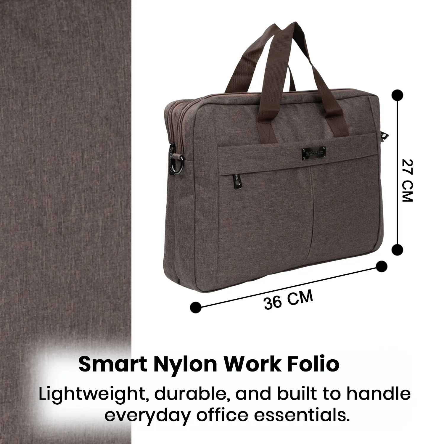 RICHBORN PlainEdge Folio is a lightweight office bag designed for professionals who prefer a clean, uncluttered and practical work accessory. Crafted from durable nylon fabric, this folio bag offers everyday strength while remaining comfortable to carry for long hours. The flat-front, minimal design gives it a refined and professional appearance suitable for office, meetings and travel. With a functional size of 36 cm (W) × 27 cm (H), it provides ample space to carry a laptop, documents, files, charger, diary and work essentials. Designed with secure zip closures, a spacious main compartment, a front utility pocket and sturdy top handles, this bag ensures organised storage and easy handling throughout the day. Proudly Made in India, it works perfectly as a laptop bag, office folio bag or daily work companion.